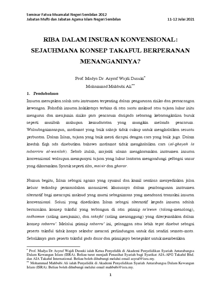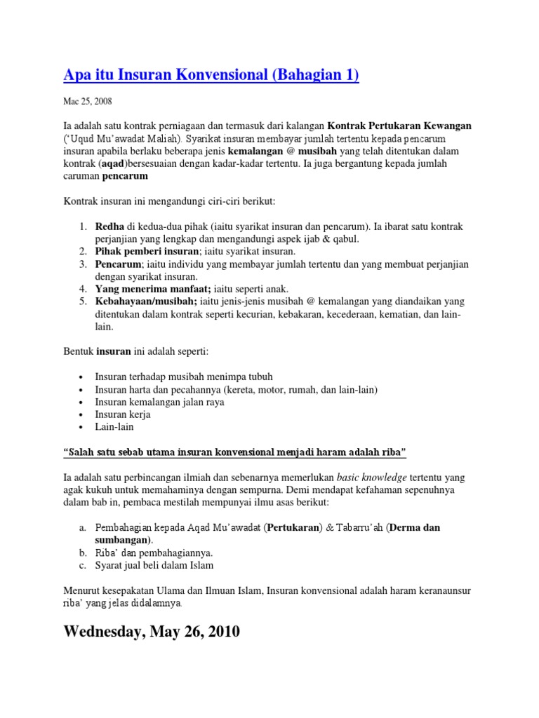 Riba Dalam Insurans Konvensional Sejauhmana Konsep Takaful Berperanan Menanganinya Pdf